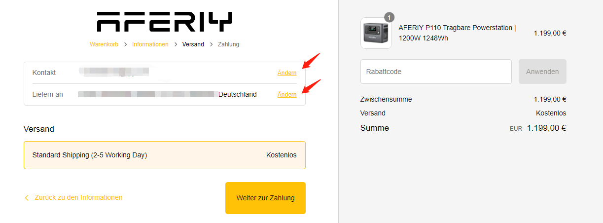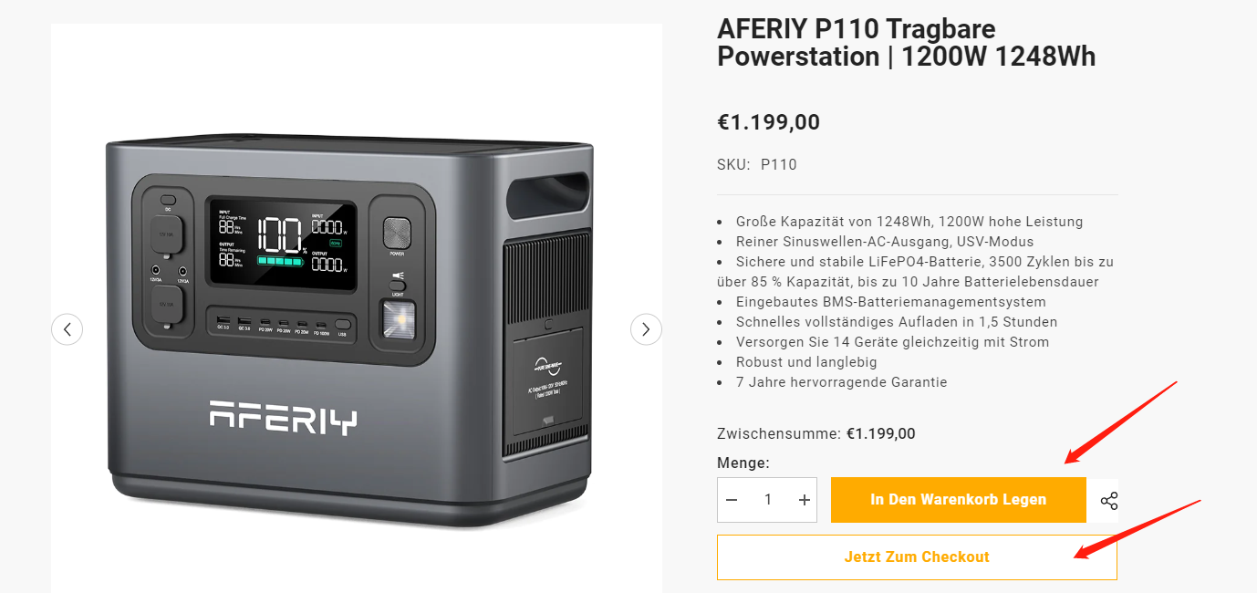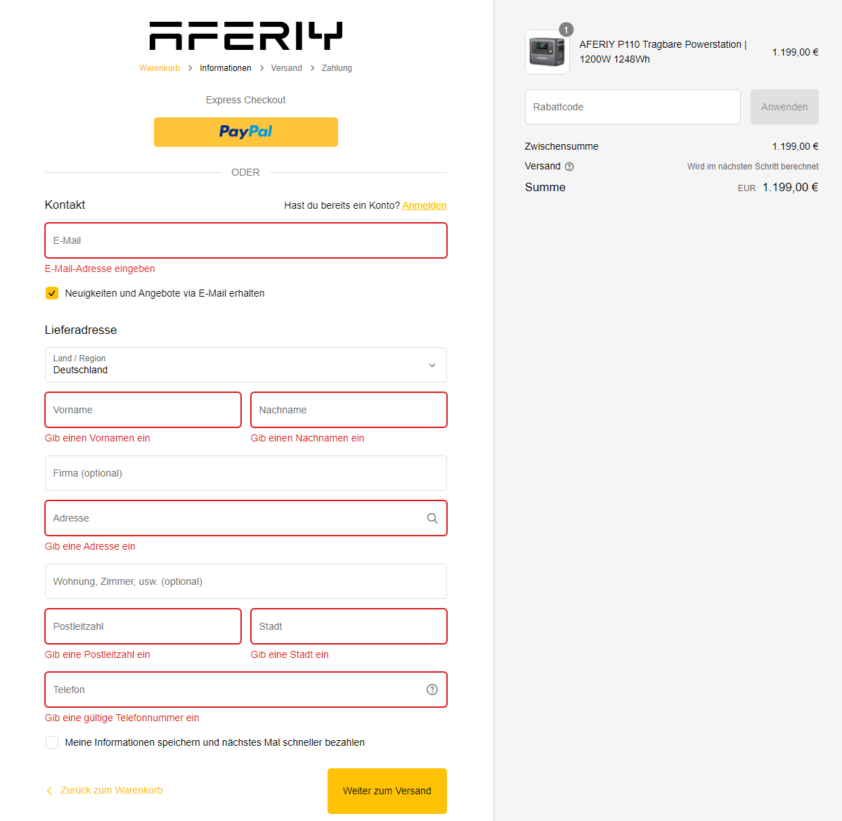 Hier ist der Einkaufsablauf auf der offiziellen Website von AFERIY (de.aferiy.com).