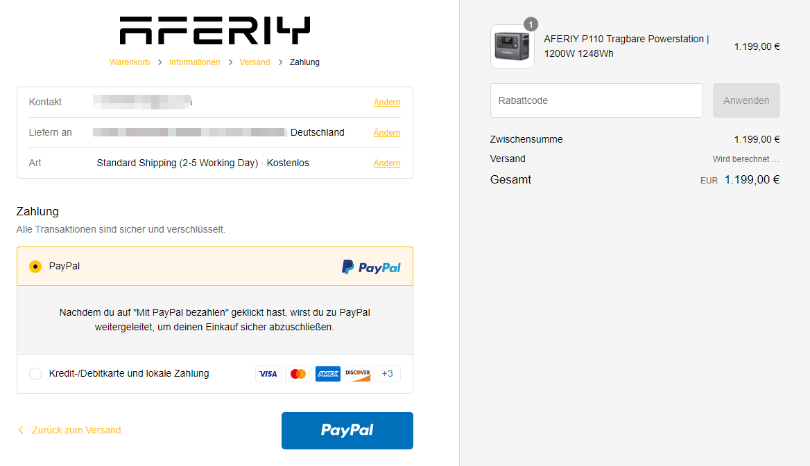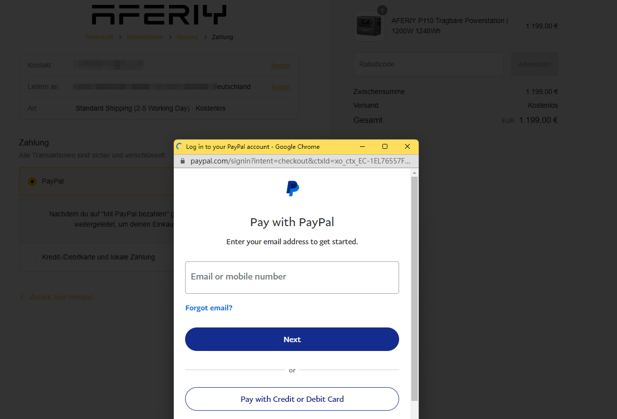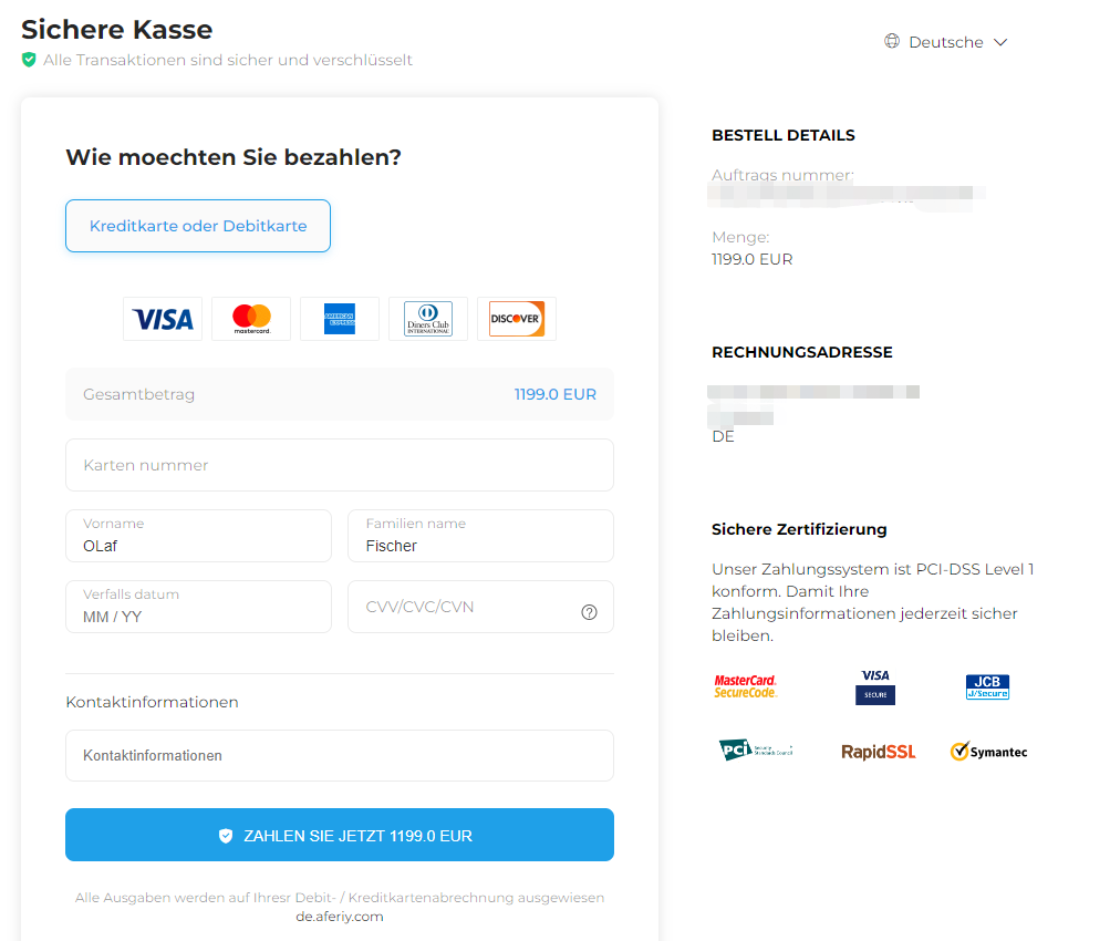 Derzeit unterstützt de.aferiy.com 2 Zahlungsarten: Paypal, Kreditkarte. Die detaillierten Prozesse sind wie folgt: