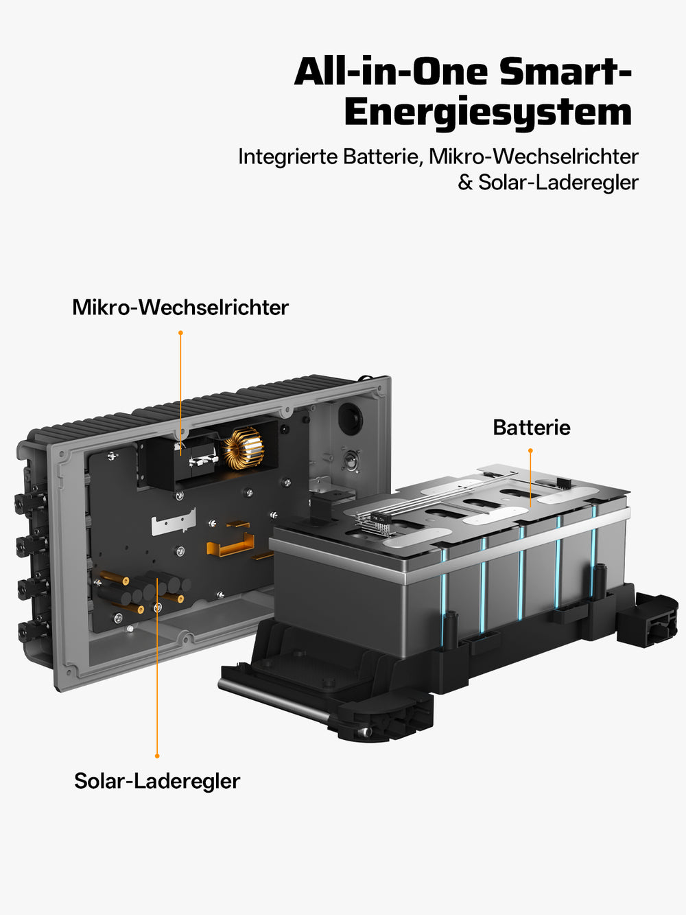 - 800 W netzgekoppelter Ausgang, erweiterbar